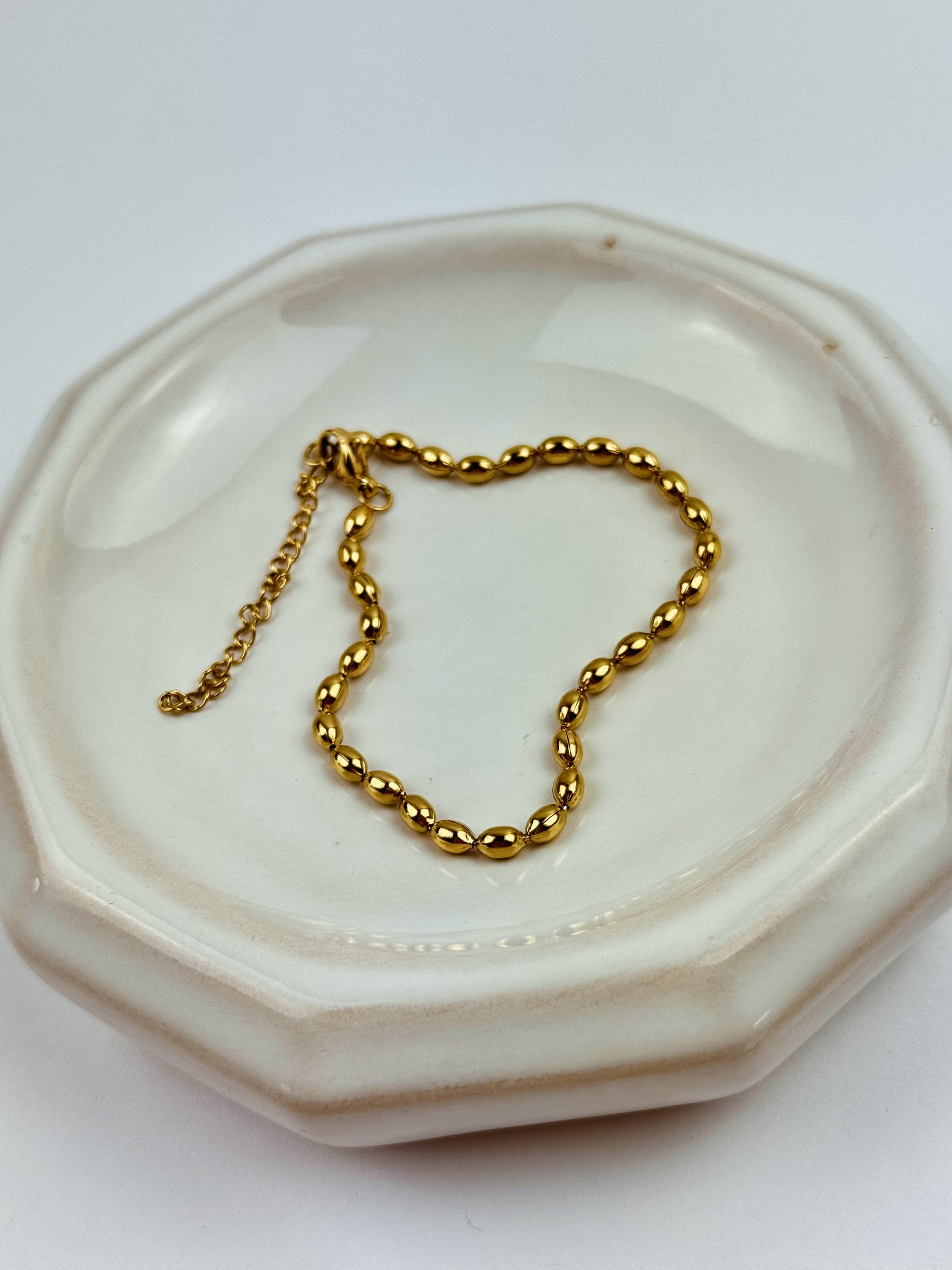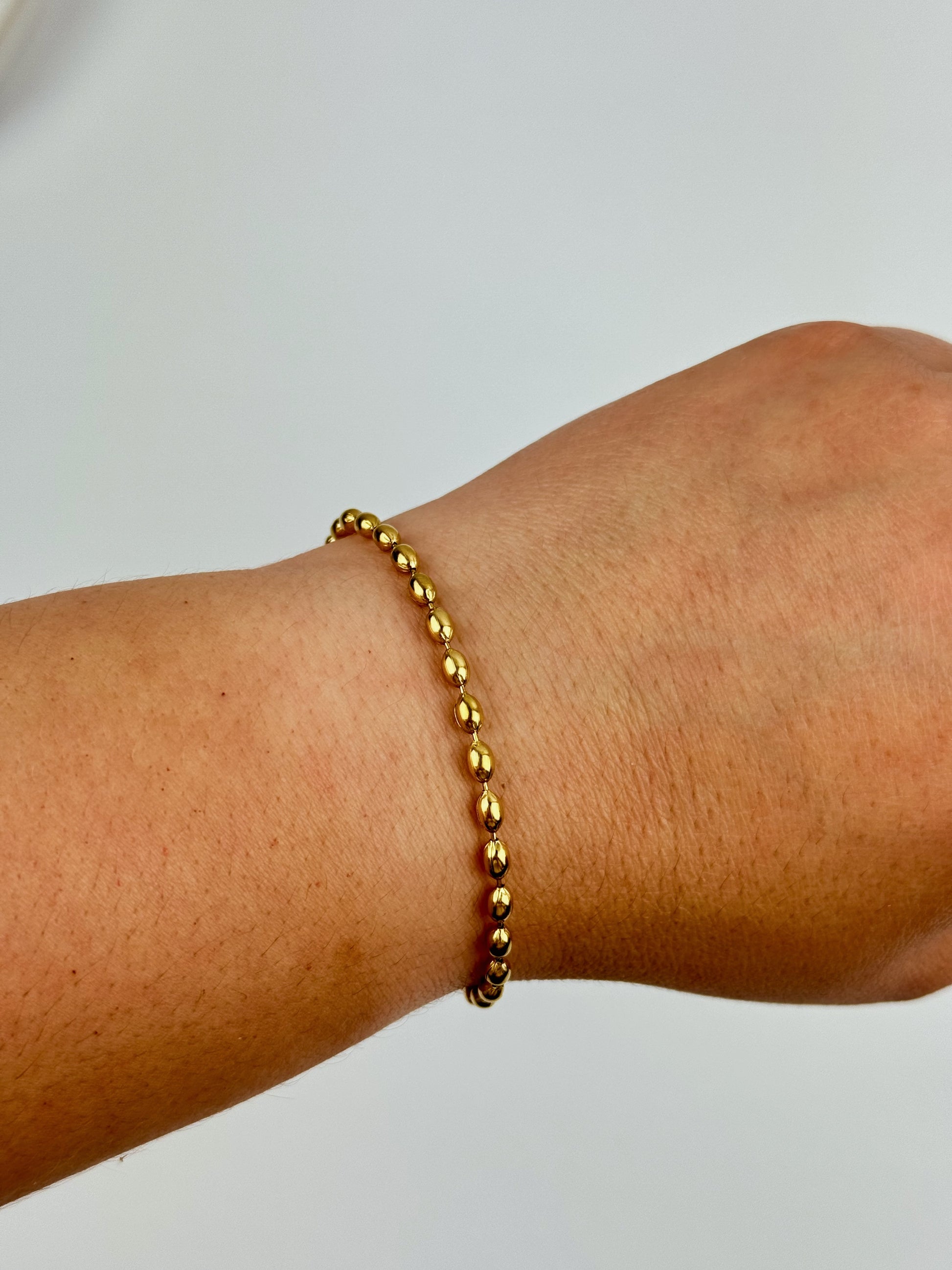 The Elena Bracelet is a minimalistic and elegant accessory crafted from high-quality stainless steel. Its chic design adds a touch of sophistication to any outfit, while its durable material ensures long-lasting wear.