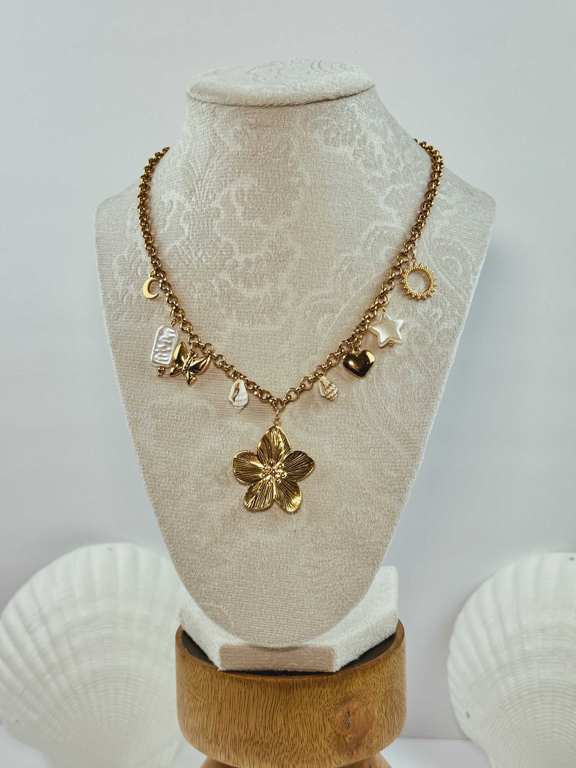 Crafted from durable stainless steel, the Flor de Sol Necklace is the perfect blend of elegance and strength. Its sleek design and quality material ensure long-lasting wear, making it a valuable addition to any jewelry collection. Elevate your style with this sophisticated piece.
