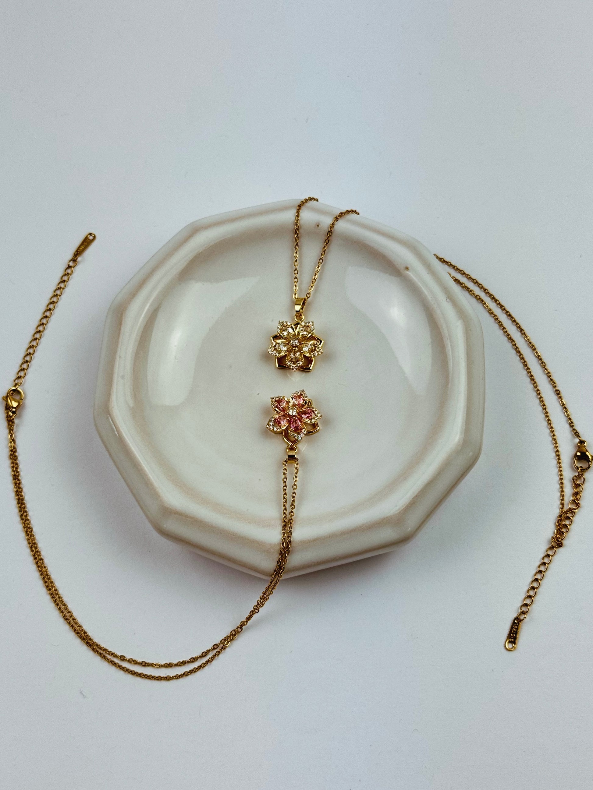 Floraviva Necklace features a rotatable flower design made from high-quality stainless steel. Its unique design is perfect for adding an elegant touch to any outfit.