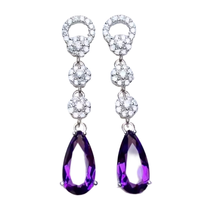 These stunning sterling silver earrings feature purple gemstones that are sure to add a touch of elegance and beauty to any outfit.