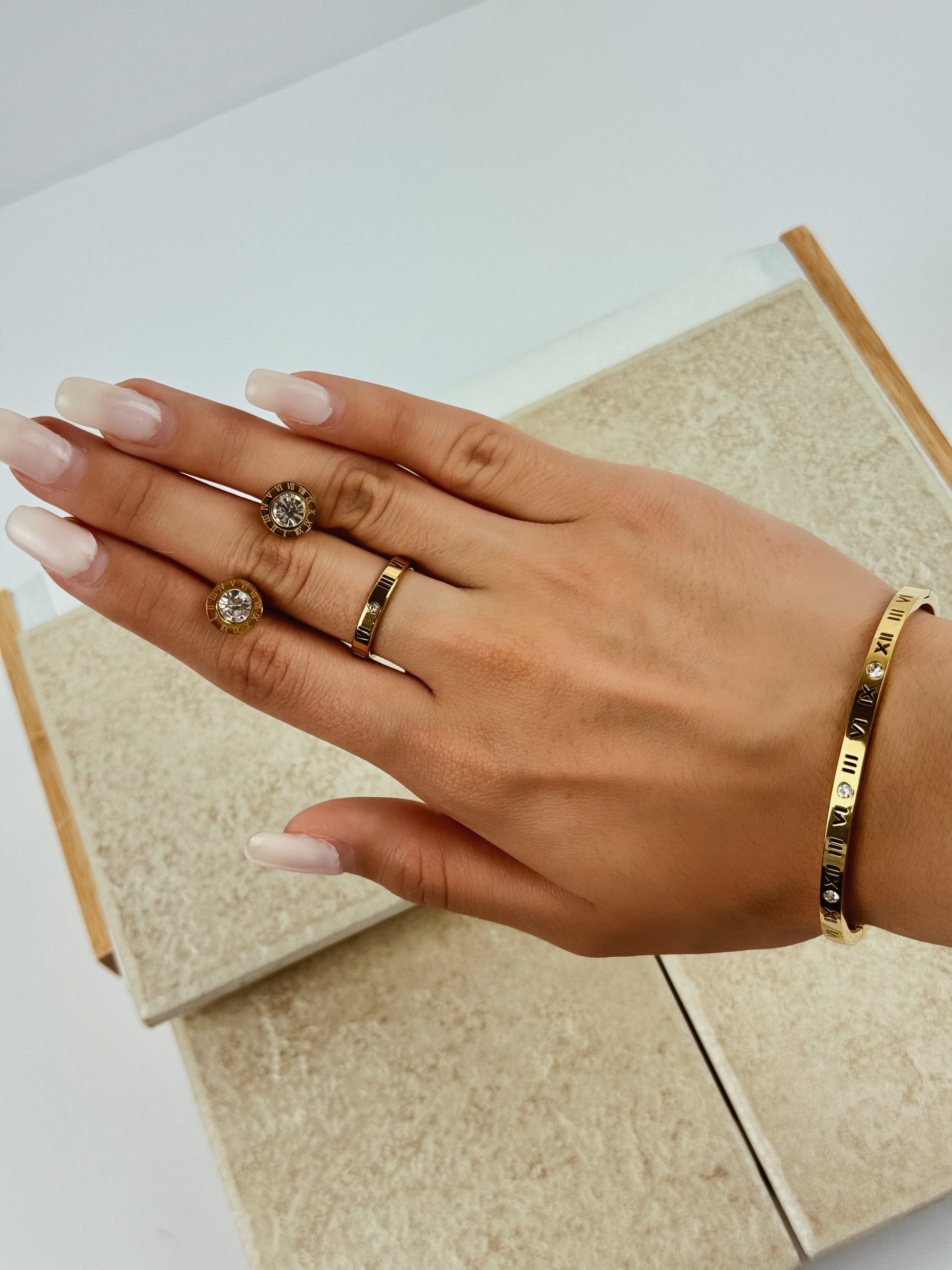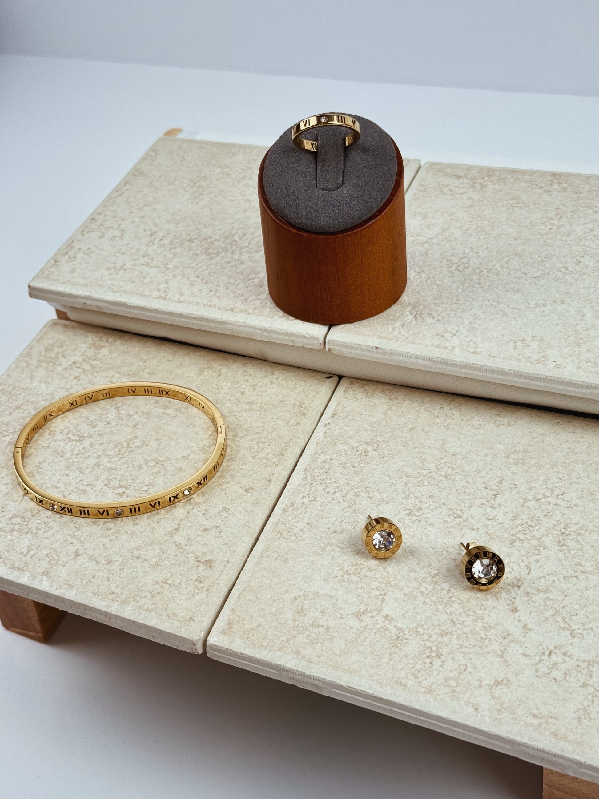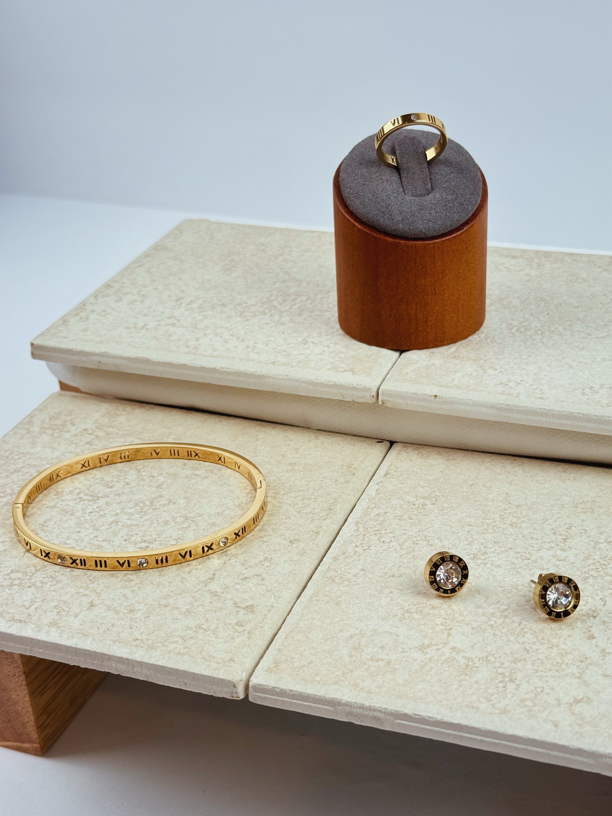 Roma Set includes a set of stylish ring earrings and a bangle, making it the perfect addition to any jewelry collection.